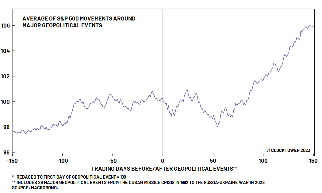 For us, this is the most important message and should lead any client communication. It is a scary moment and the natural impulse is to take risk off the table. However, history shows us that markets often rise after major geopolitical situations.
