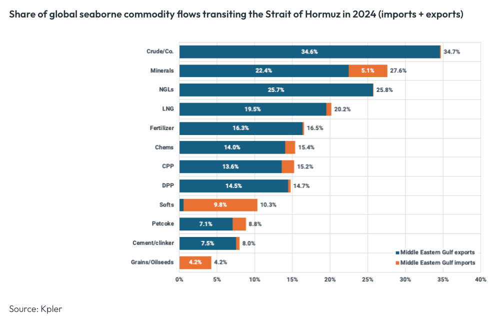 While the conversation has been focused on oil, the Middle East is a critical trading partner for many important commodities. Looking particularly at the Strait of Hormuz, it is a key shipping lane for oil by-products as well more than 15% of the world’s fertiliser.