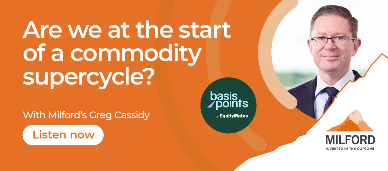 Milford Portfolio Manager Greg Cassidy, sits down with Bryce and Ren from Equity Mates’ Basis Points to explain why now is the time to rethink exposure to real assets. The next phase of the commodity cycle could be bigger and broader than many expect.