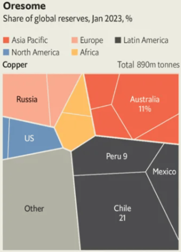 And here’s the best part, for Australians at least. Much like iron ore, nickel, lithium, rare earths, and so many other metals central to the world economy: Australia is blessed with copper.